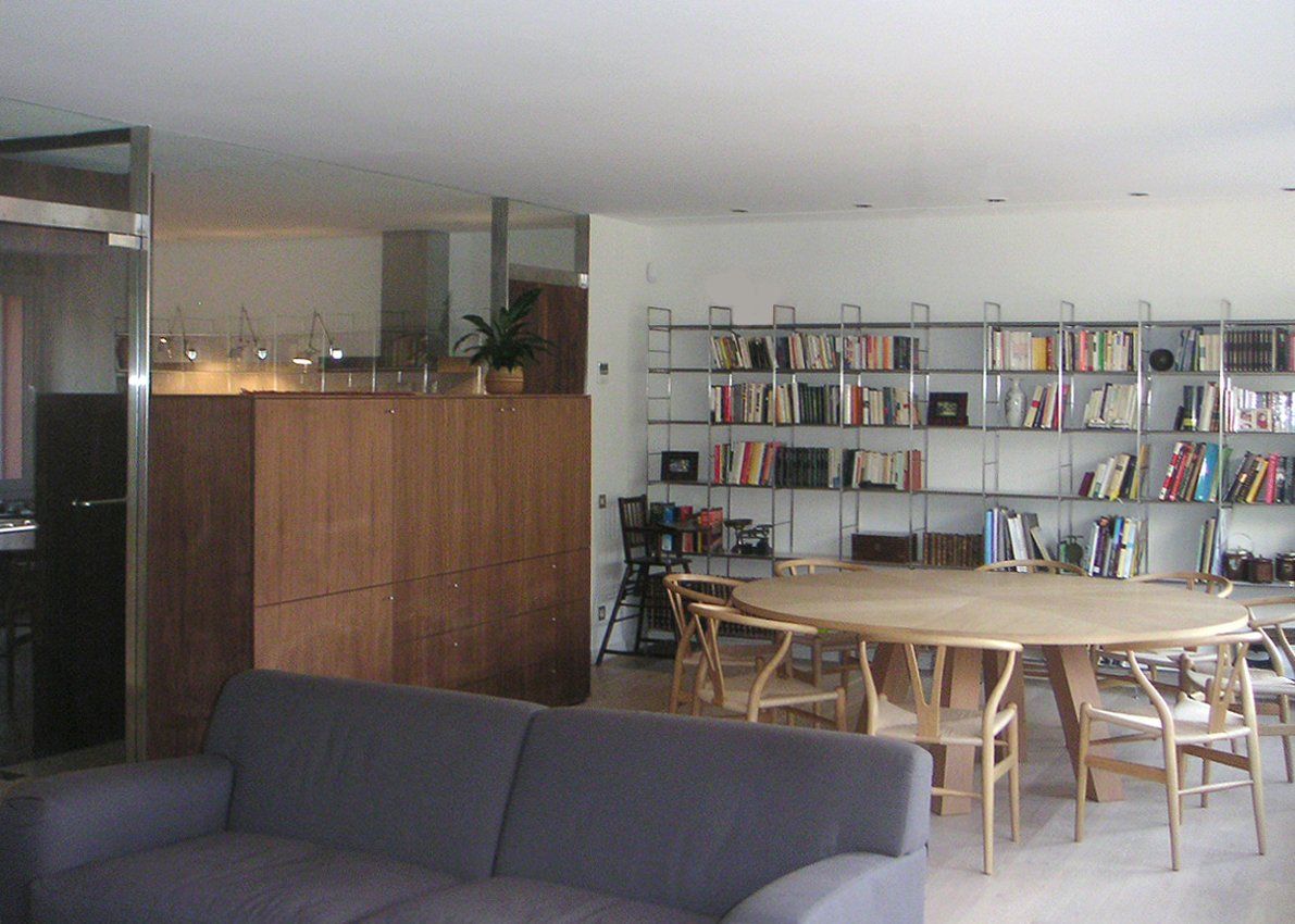 Se ha querido aprovechar al máximo la luz que entra a través de los ventanales de la fachada para llevarla lo más al interior posible de la vivienda, mediante un paramento de cristal con puertas incluidas llega a la cocina y al pasillo que comunica con la parte trasera del piso donde se ubican los dormitorios.